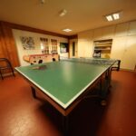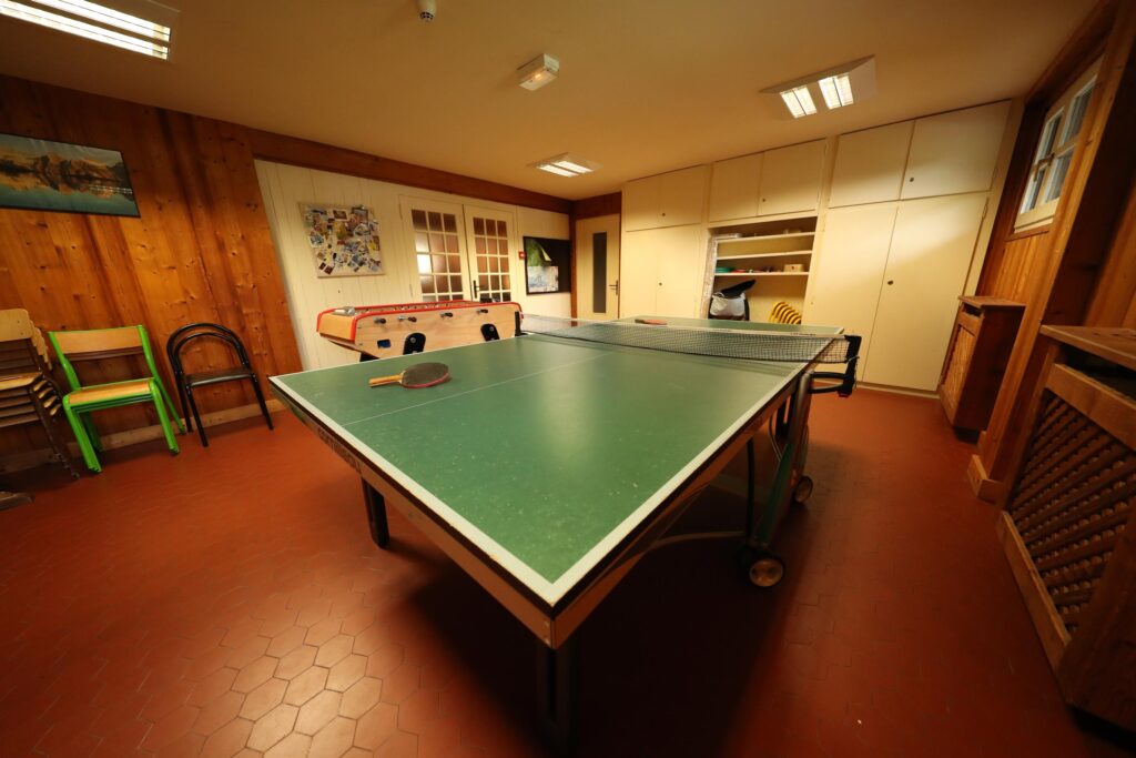 La salle de jeux, qui est équipée d’une table de ping-pong, est aussi utilisable en salle de travail.